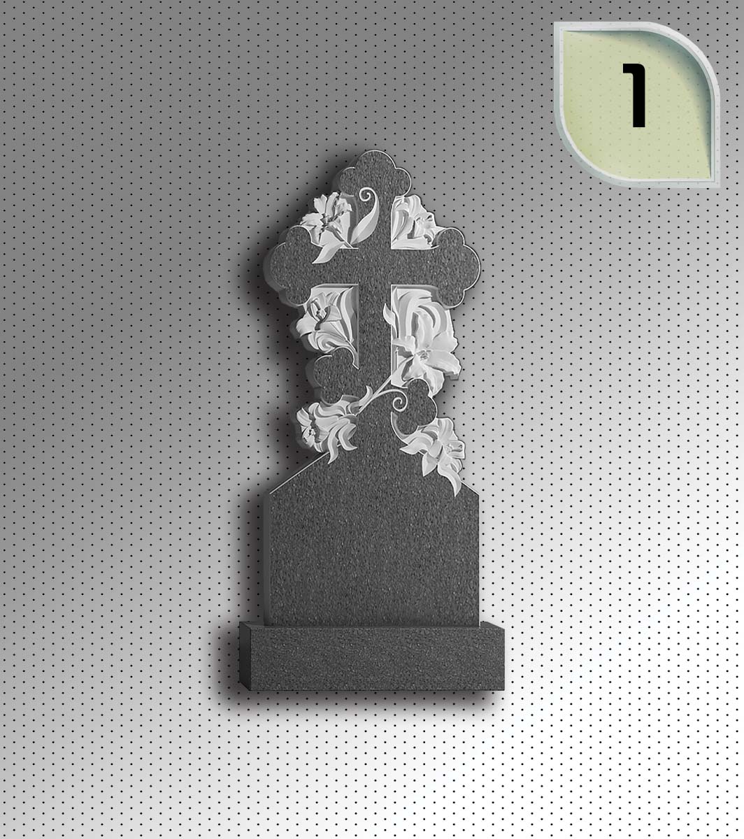 Резной Крест-трилистник, увитый цветками лилий, с Голгофой.